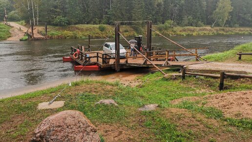 Открываем интересные места Латвии. Лигатненская паромная переправа на ручной тяге, смотрите со звуком