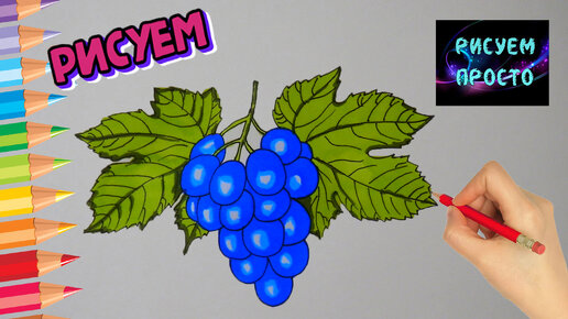 Как нарисовать ГРОЗДЬ ВИНОГРАДА, Рисуем Просто/How to draw a bunch of GRAPES, Draw Simply