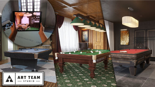 Дизайн бильярдной комнаты от студии "АртТим" и презентация на объекте с помощью приложения "Ключ"