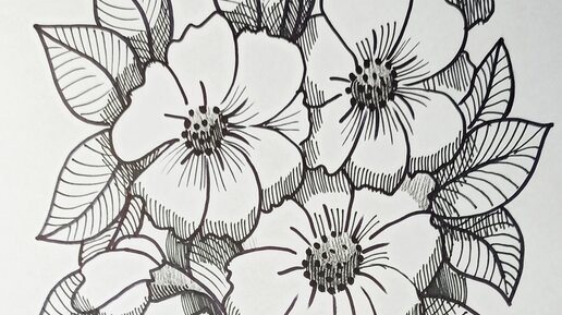 Скетчинг черным маркером, как просто нарисовать цветы. Поэтапный мастер-класс.