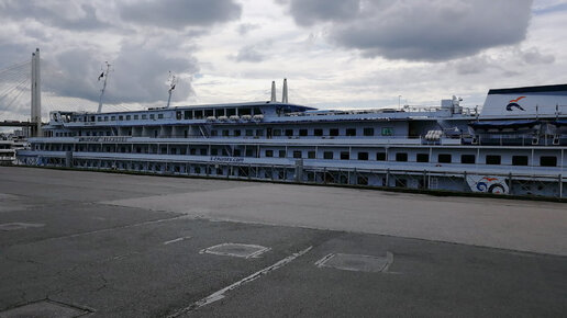 Круизный теплоход Дмитрий Фурманов проходит шлюз в Подпорожье