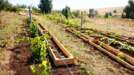 Папа и сын делают вместе грядки-короба для укрытия на зиму винограда