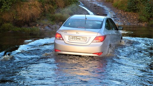 Отчаянный на Hyundai Solaris полез в брод!