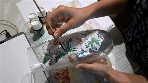 Первый опыт с витражными красками. Процесс создания рисунка на вазе и ошибки, с которыми мне пришлось столкнуться