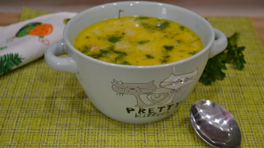 Ароматный суп с копчёной курочкой и плавленым сыром.Будут просить еще и еще!