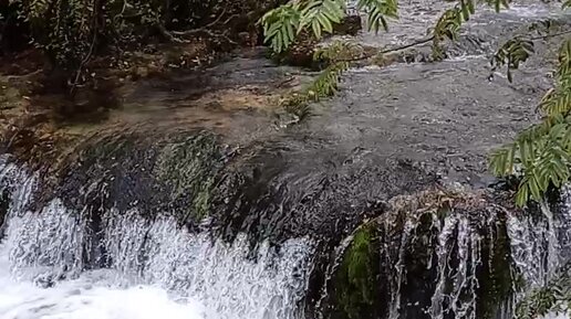 Водопад журчит, вода кристальная, природа красивая. Сентябрь. Ленинградская область