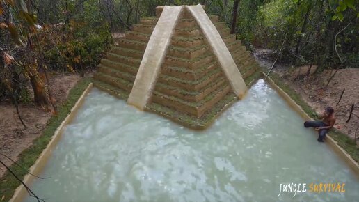 Два парня из азии построили пирамиду с горками и бассейном в джунглях. Расслабляющее видео