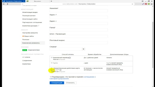 Как заполнить реквизиты SWIFT в Dailymotion , для вывода денег