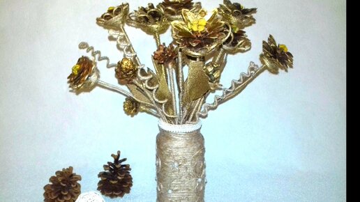 А вы делали осенний букет из шишек и шпагата? Поделки на осеннюю тему.