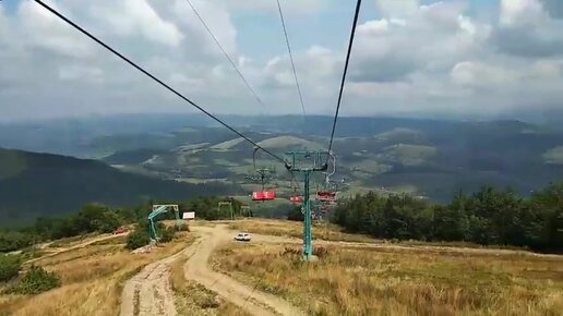 Спускаемся на подъемнике с горы в Карпатах, Украина