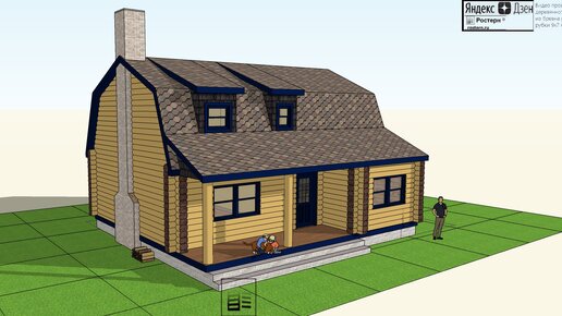 Дом из рубленого бревна 9х7 м с кухней и двумя спальнями