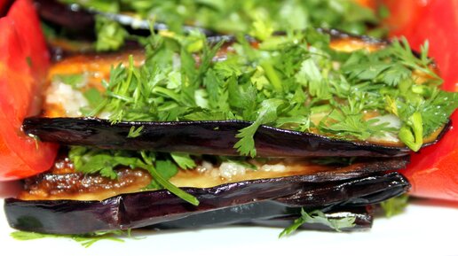 Баклажаны под чесночным соусом. Соус киндзмари.
