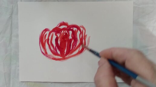 Рисую большой красный мак акриловыми красками - показываю как можно просто его нарисовать.