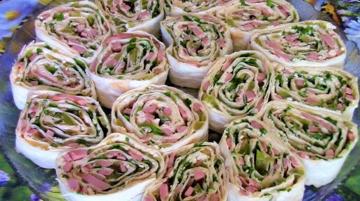 Рулет из лаваша с вареной колбасой и с болгарским перцем - отличная закуска праздничного стола.