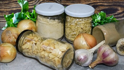 Сушеный лук и сушеный чеснок - заготовка на зиму как приправа