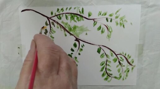 Рисуем ветку от дерева с расцветшими цветками за 4 минуты.