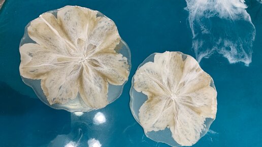 Заливали эпоксидной смолой цветок, получился интересный узор.