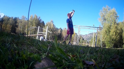 Показываю как поднимать самодельную гиря весом 15 кг 20 раз левой рукой
