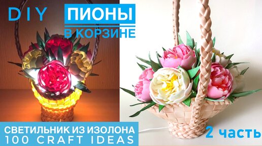 Светильник ночник КОРЗИНА С ПИОНАМИ 2 часть. Мастер класс светильник изолон. Пионы из изолона. DIY