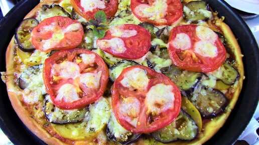 Пицца с сочной начинкой из баклажанов и кабачков. Вкуснейшая пицца.