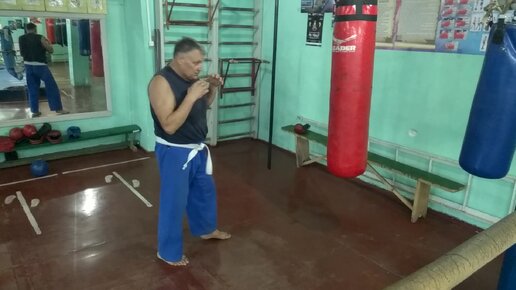 Мне 62 года. Занимаюсь карате кудо. Сильный удар с разворота.
