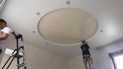 Таймлапс натяжки Двухуровневого натяжного потолка с зеркальным полотном в центре