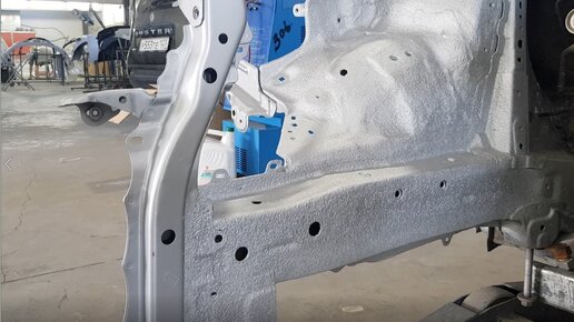 После ремонта лонжеронов нанесли распыляемый герметик на оба лонжерона и на оба стакана. Объясняю почему так сделали!