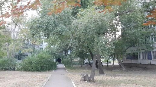 Осенняя прогулка по городу: уже видные желтые листья, но еще тепло