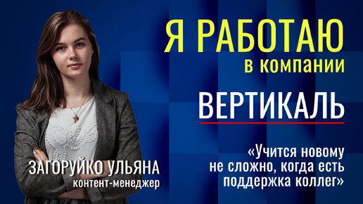 Я работаю в компании Вертикаль.«Учится новому не сложно, когда есть поддержка коллег».контент менеджер Ульяна Загоруйко