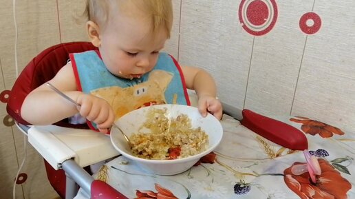 1 г 1мес Едим вилкой самостоятельно