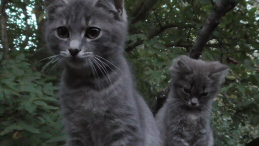 163 день: котик забирает колбасу у кошки себе в миску