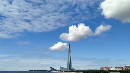 Прогулки по Петербургу: "Лахта-центр, фонтан, закат над мостом"