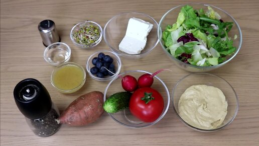 Салат на каждый день. Салат с хумусом и печеным бататом. Салат вегетарианский