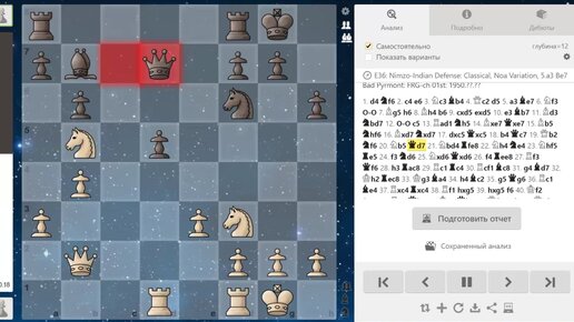 Ефим ошибается и стыдно проигрывает в 12 партии первого турнира ФРГ по шахматам Вольфгангу Унцикеру. (Боголюбов - Унцикер, 1950)