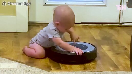 Малыш и робот-пылесос