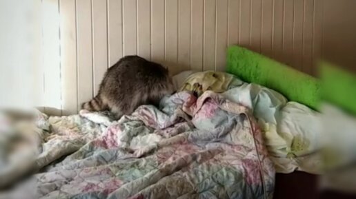 У друга дома живёт енот. Мы поставили скрытую камеру, посмотреть, что он делает, пока никто не видит.