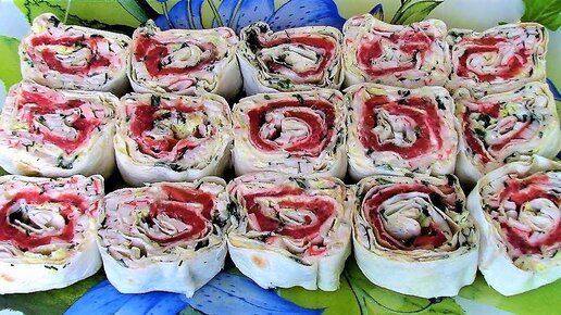 Роллы из лаваша с красной рыбой и крабовыми палочками просто тают во рту.