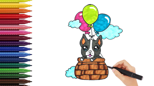 Как нарисовать СОБАКУ НА ВОЗДУШНОМ ШАРЕ | раскраски для детей | kawaii ❤