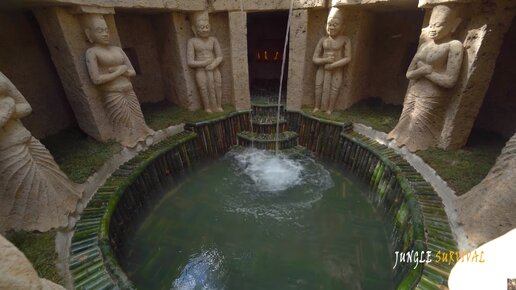 Парни с помощью древних навыков построили подземный данж с бассейном из бамбука. Расслабляющее видео