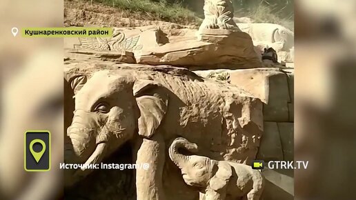 Дракон, огромный кот и семейство крокодилов: Житель Кушнаренковского района вырезает из скалы каменные фигуры