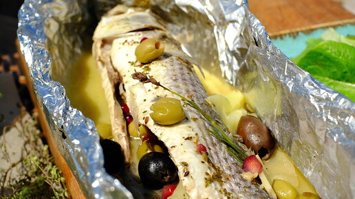 Рыба, запеченная с оливками, маслинами и белым вином. Полезно, вкусно, ароматно – просто не устоять!
