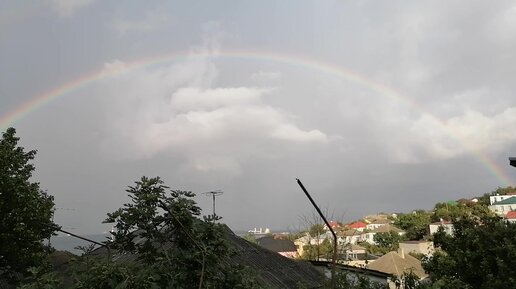 Радуга в небе над Черным морем после дождя. Новороссийск, Шесхарис.