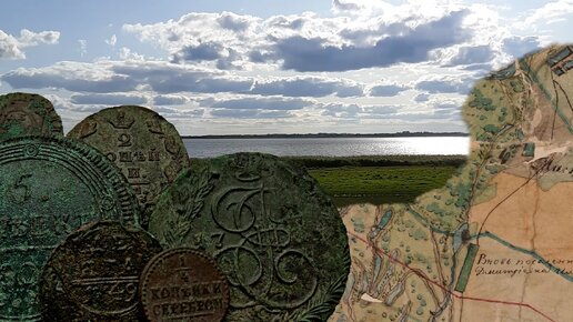 Кольцевые пятаки на выбитой деревне. Коп монет с металлоискателем.