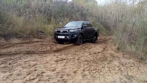 Toyota Hilux играючи преодолевает диагональные вывешивания на песчаном подъеме