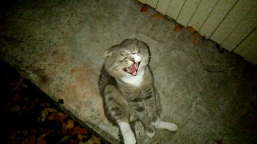 Кот сидит как человек... Такого я ещё не видел