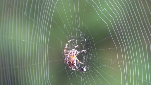 Потрясающее зрелище! Паук плетёт паутину