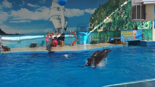 Показываю выступление черноморских дельфинов в Анапском дельфинарии