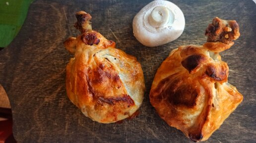 Идея для ужина: курочка в мешочке. Жареная ножка в тесте с грибами и луком. Гарнир уже внутри