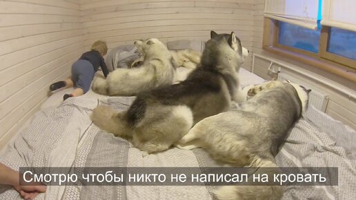 Опасная ситуация - 5 ХАСКИ и Артур без подгузника на кровати, смотрю, чтобы не написали))