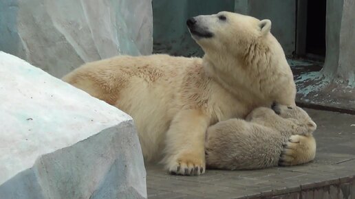 Колыбельная для белого медвежонка в Новосибирском зоопарке: показываю мгновения любви, ласки и заботливого материнства